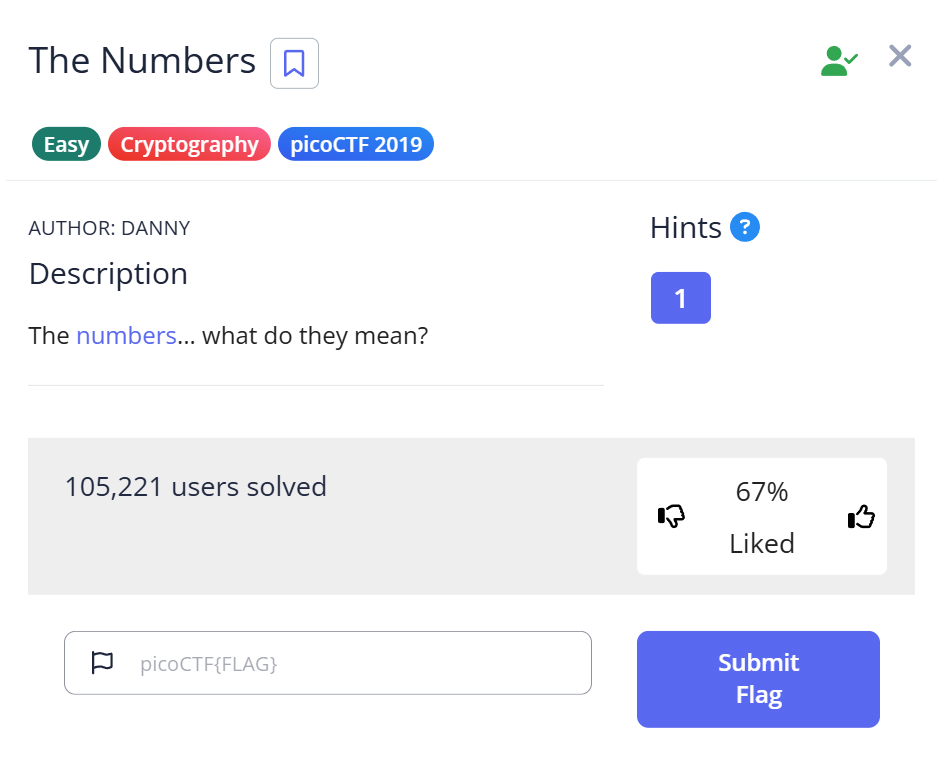 In this challenge, we are given a sequence of numbers that correspond to letters in the alphabet (e.g., 1 = A, 2 = B, 3 = C, …). By recognizing this simple substitution, we can decode the message to reveal the flag. We can solve this easily using an online tool like dCode’s Letter‑Number Cipher.