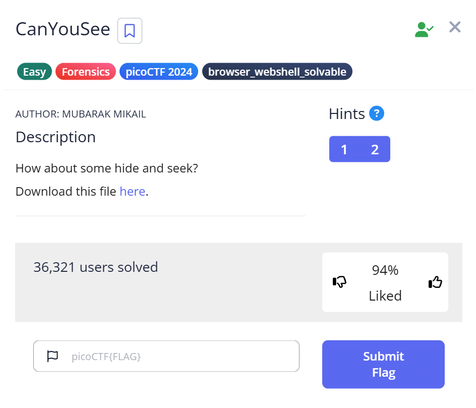 $ python3 decode.py picoCTF{ME74D47A_HIDD3N_b32040b8}