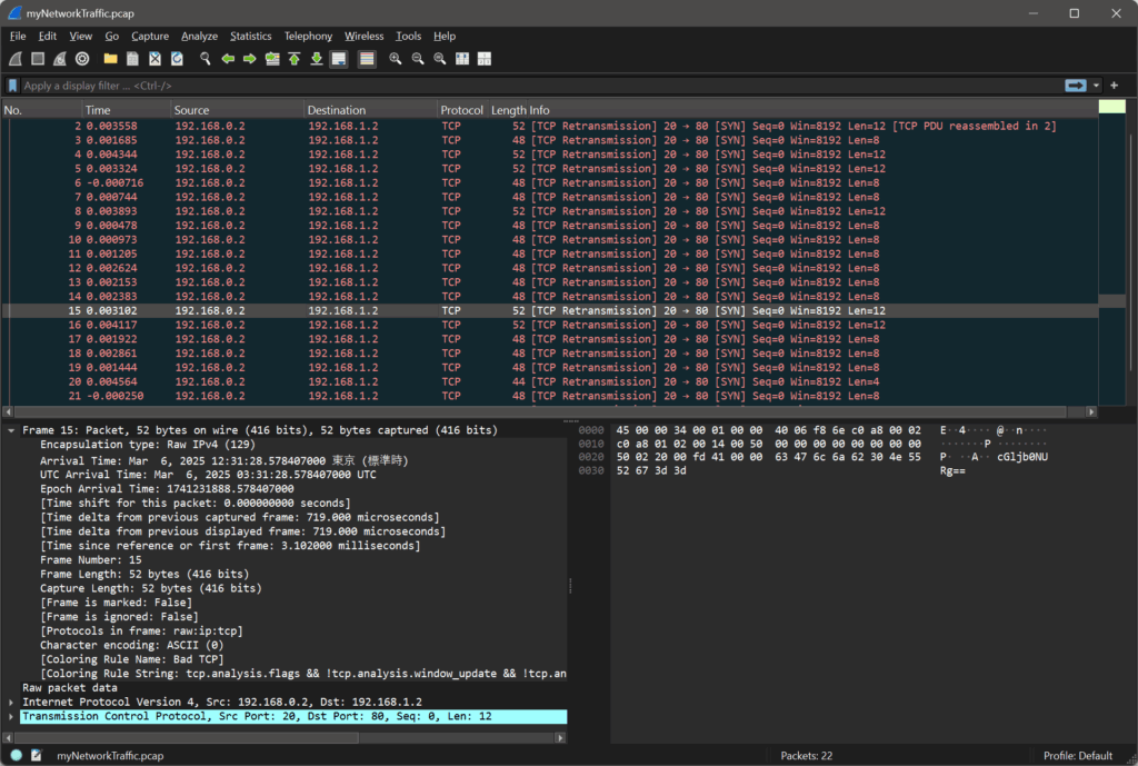 files are network captures, often containing hidden messages in packet data.- Wireshark is your best tool for visually exploring them.